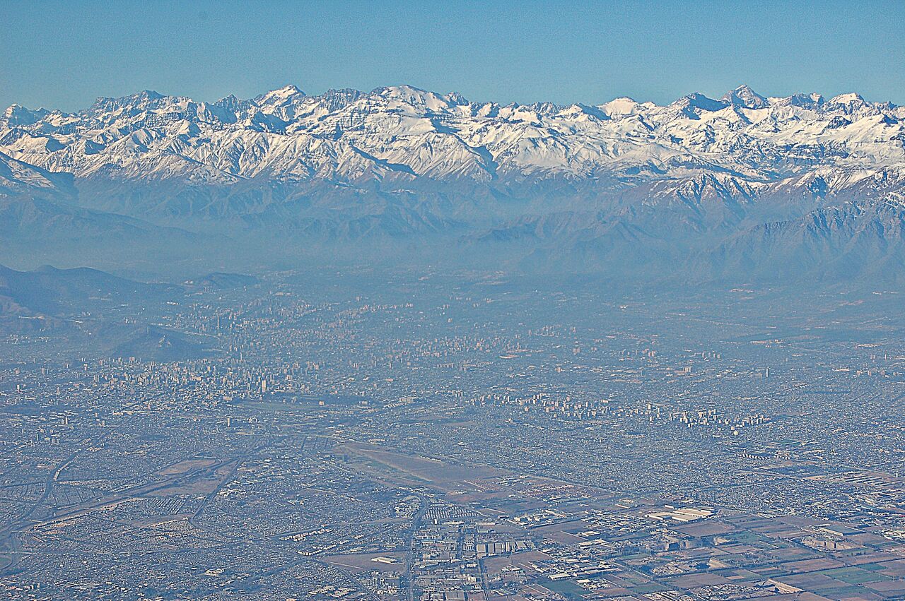 サンティアゴ市の東にはチリの背骨のように南北に走るアンデス山脈が見えます。