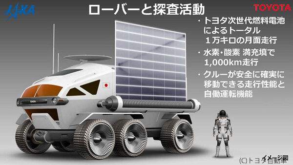 月面を移動する月面移動車については、既にJAXAとトヨタ自動車(株)との間で開発が進められている。
