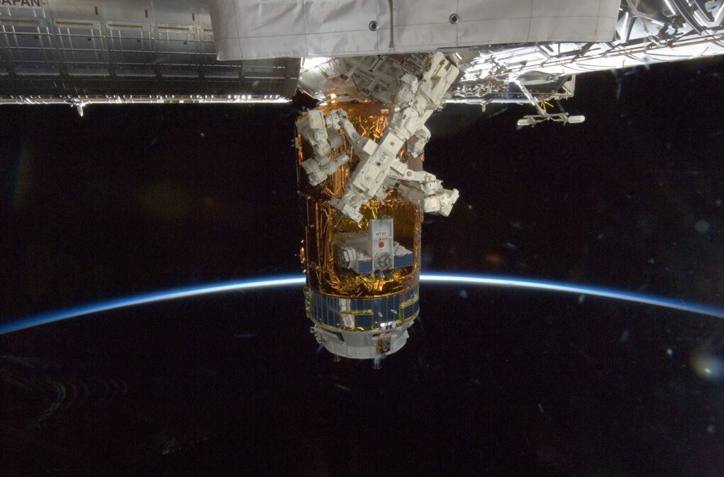 (国際宇宙ステーションにドッキング中の宇宙船こうのとり 写真提供:NASA/JAXA)